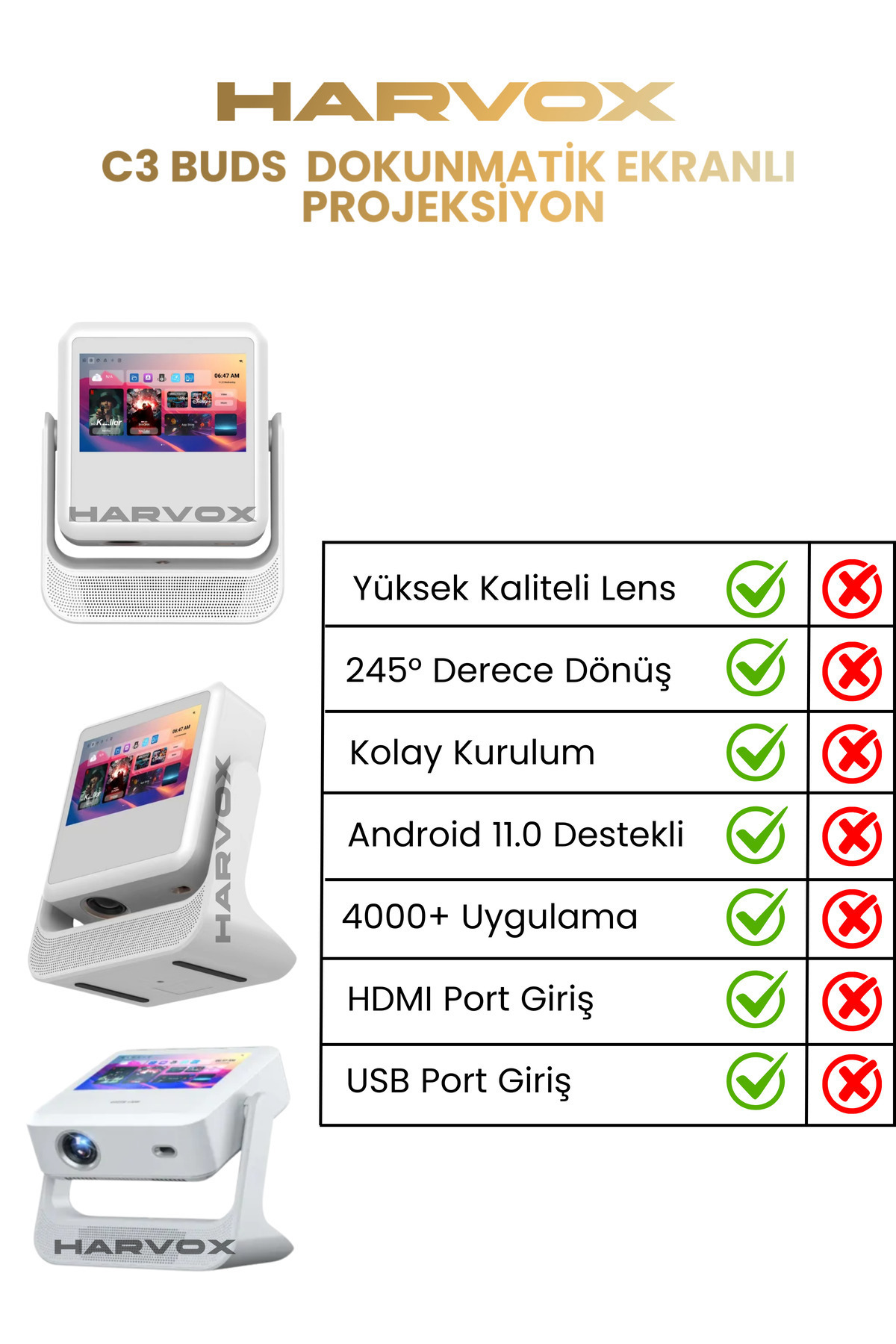 C3 Buds Ekranlı Projeksiyon Cihazı Taşınabilir Android Sistemli Wifi HDMI USB Destekli Projektör