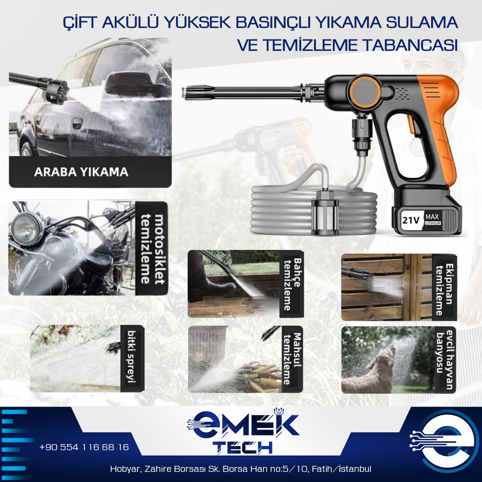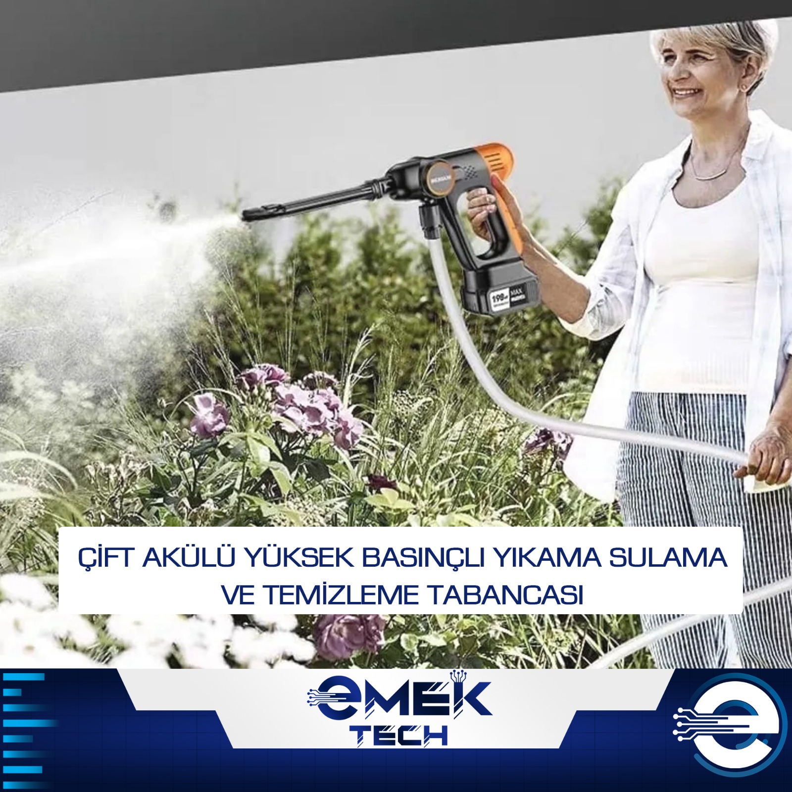 Hart Çift Akülü Şarjlı Yüksek Basınçlı Oto Araba Bahçe Yıkama Sulama ve Temizleme Tabancası Makinesi