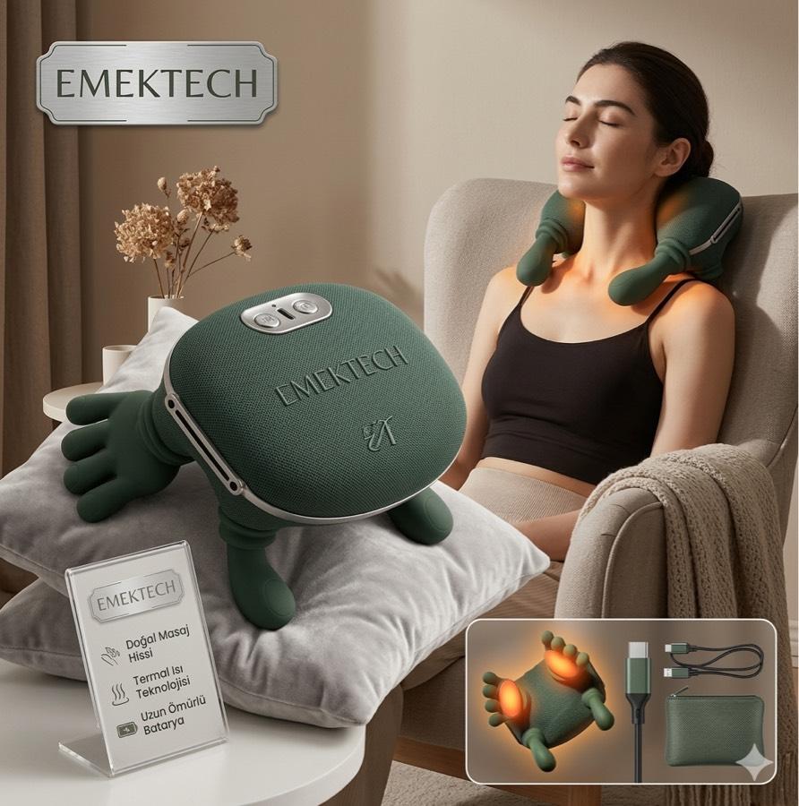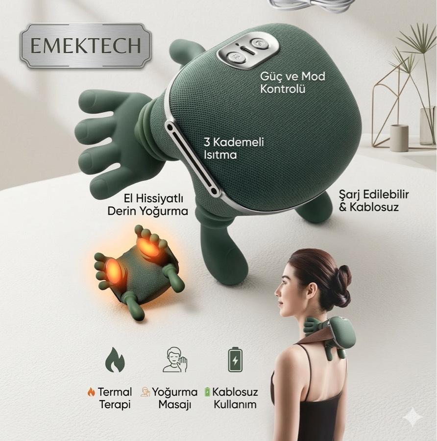 EMEKTECH Şarjlı Isıtmalı El Tipi Boyun ve Omuz Masaj Aleti - Yoğurma Etkili Premium Masaj Cihazı
