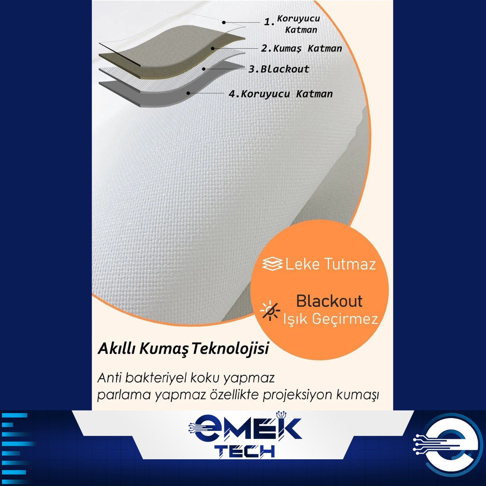 Özel Kumaş Üretimi: Yüksek kaliteli, dayanıklı kumaş, projeksiyon görüntülerinin kalitesini korur ve maksimum kontrast sağlar.