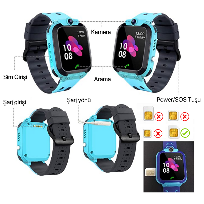 Sim Kartlı DH8 Akıllı Çocuk Saati Konum-Arama-Kamera Özellikli