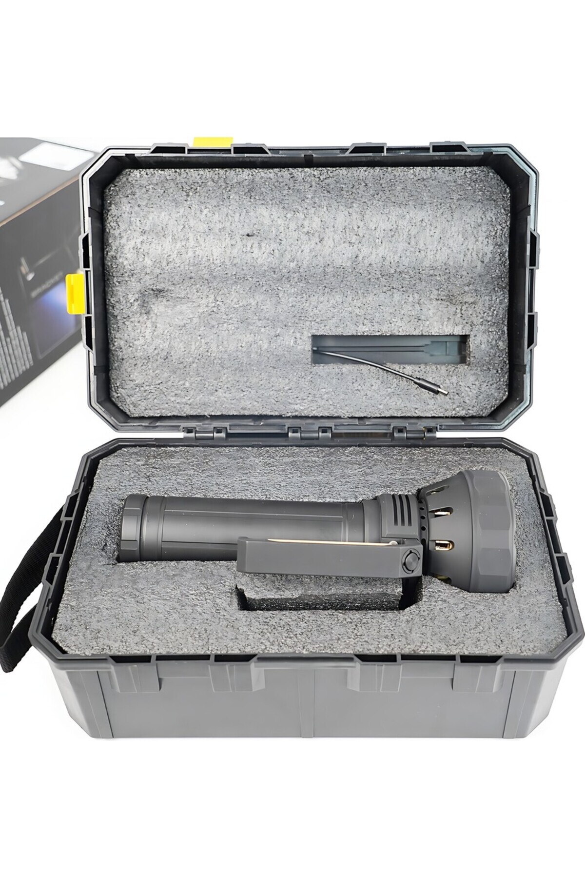 W5220-2 Yüksek Güç Tipi C Şarj Edilebilir El Tipi Spot Işığı Kısılabilir 16 Ledli Devriye için Arama Işığı Yüksek Güçlü Aydınlatma 16 adet P50 LED lamba boncuğu ile donatılan bu el tipi projektör, devriye ve keşif için mükemmel olan 48000 lümene kadar olağanüstü parlaklık sağlar.
